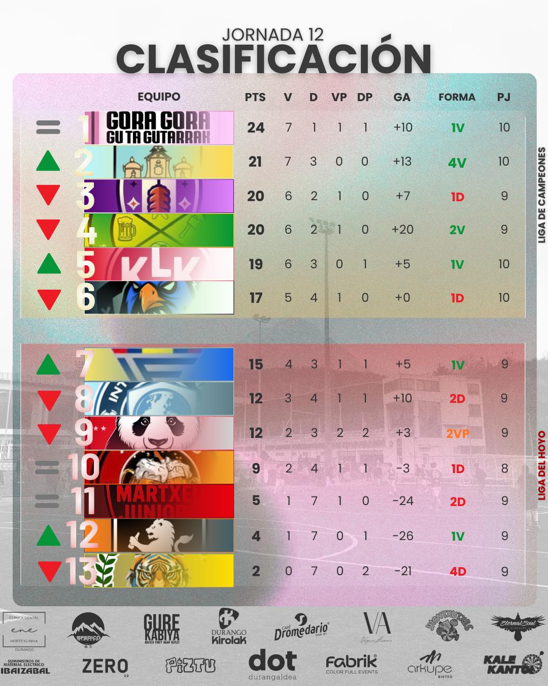 En el último partido de la jornada, el líder Gora Gora superó al Axpe por 2-0 y amplía su ventaja al frente de la clasificación. Con esta victoria, Gora Gora se clasifica matemáticamente para la Liga de los Campeones y, con ello, asegura también su presencia en los playoffs. Queda por definir la posición final, que se decidirá durante la disputa de la Liga de Campeones.
