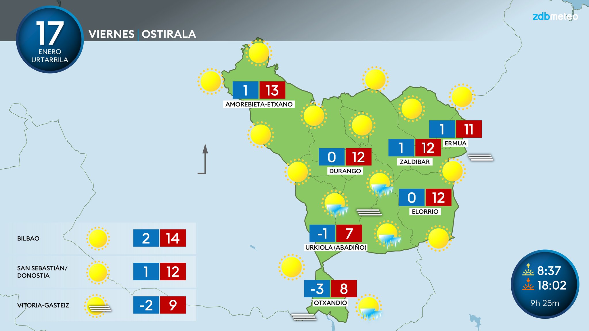 - Otxandio: – 2,2ºC