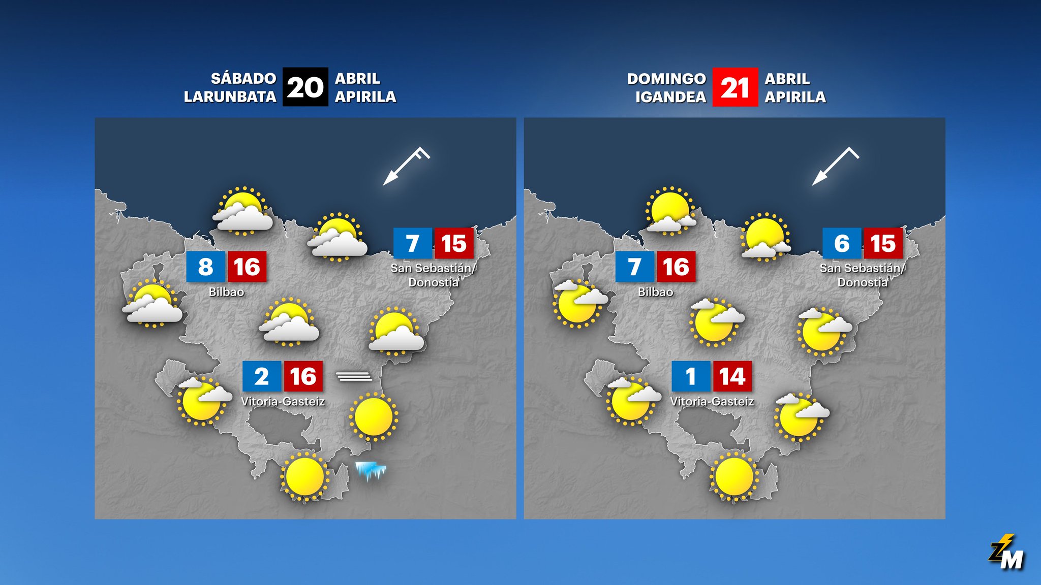 EGURALDIA | Comenzaremos el fin de semana con tiempo estable pero fresco. El amanecer volverá a ser frío, puede helar en puntos de Álava y Navarra y también se pueden formar bancos de niebla. Levantará durante la mañana y el resto del día se irán alternando los intervalos nubosos con ratos soleados; cuanto más al sur el cielo se verán más limpio. El viento soplará del este; por la tarde se fijará del nordeste y se intensificará. Las temperaturas diurnas descenderán con máximas entre los 15 y los 18 ºC.