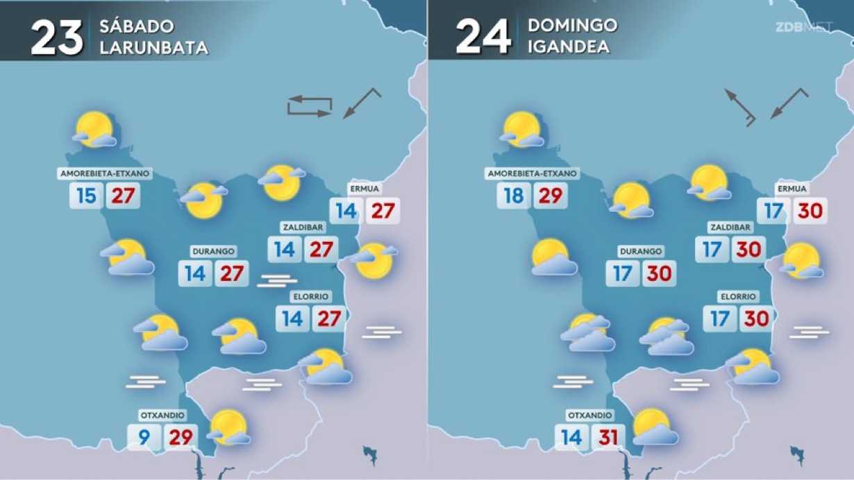 Tiempo soleado para el fin de semana en Durangaldea PREVISIÓN: Zaldibar Meteo
