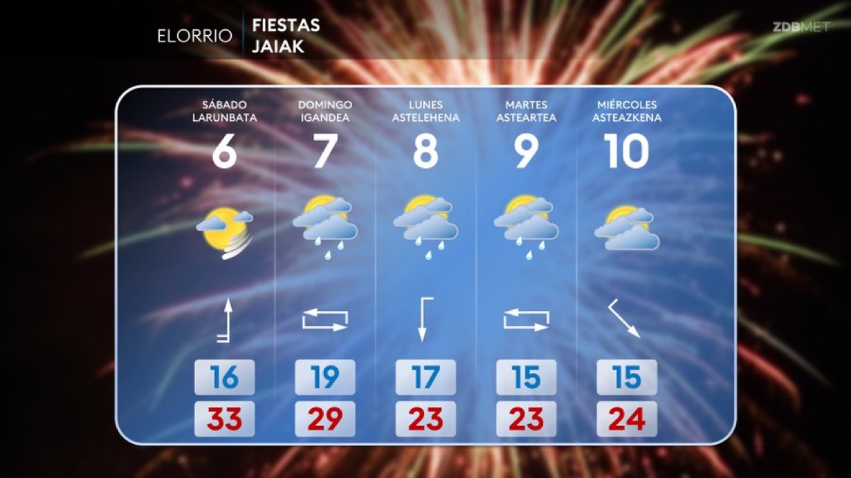EGURALDIA | El sábado viento sur intenso y calor. Cielos prácticamente despejados durante toda la jornada, con el viento soplando con intensidad del sur-sureste, provocarán que los termómetros superen fácilmente los 30 ºC, especialmente en la vertiente cantábrica. Se registrarán rachas muy fuertes de viento en zonas de montaña, sobre todo del este. Es probable que en el Valle del Ebro se formen nieblas a primeras horas.