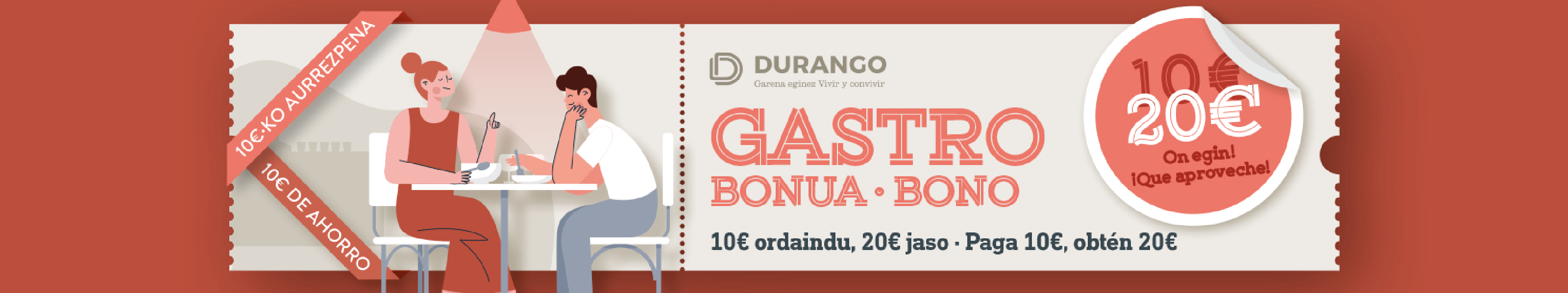 A través de estos nuevos bonos, inexistentes hasta ahora, los durangarras podrán conseguir un descuento de hasta 20 euros en los comercios de hostelería de Durango. En total, el consistorio durangués ha destinado 35.000 euros a esta nueva campaña.
