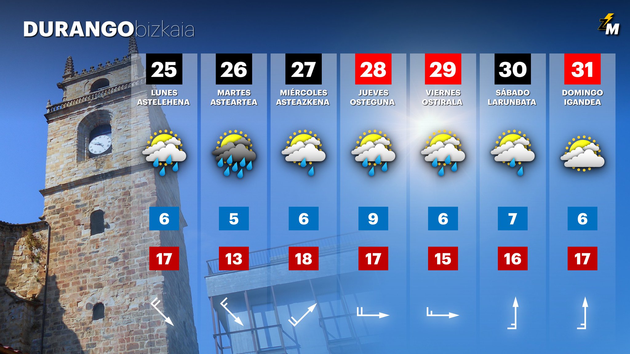 EGURALDIA | Esta semana, la última de marzo, y coincidiendo con la Semana Santa, se presenta bastante revuelta con frentes que irán dejando un tiempo gris, algunas lluvias, aunque no se esper que sean cuantiosas y ambiente fresco incluso con nieve en torno a los 700 metros mañana martes.