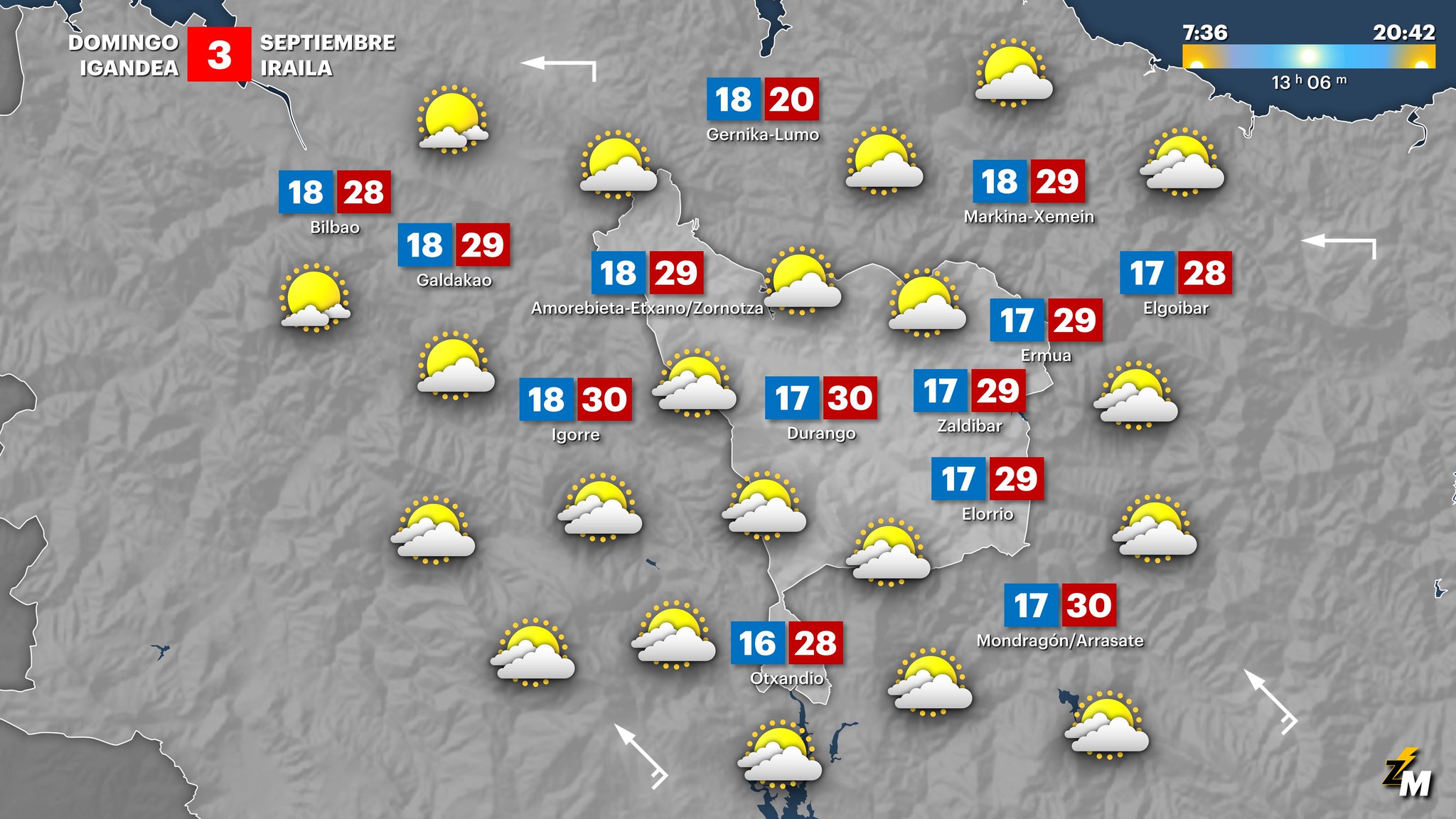 EGURALDIA | Tras el paso de la DANA que dejaba hasta 15,7 litros por metros cuadrados en Mallabia, el domingo llega con tiempo será más tranquilo y estable, con una subida de las temperaturas máximas, aunque todavía se podría producir algún chubasco aislado. Predominarán las nubes medias y altas, con apertura de algunos claros. El viento soplará de componente este en general; en el interior el viento tendrá un claro toque del sureste, siendo en esta zona racheado, sobre todo a partir de media tarde. Las máximas se van a acercar mucho a la barrera de los 30 ºC.