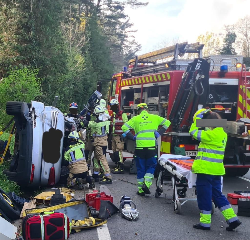 ERMUA | Una persona ha resultado herida tras volcar con su vehículo en la N-634 en Ermua, dirección Bilbao, en el siniestro que ha tenido lugar sobre las cinco de la tarde. Varias dotaciones de bomberos del parque de Iurreta y de Gipuzkoa han acudido al lugar a socorrer al conductor que ha sido evacuado al hospital de Mendaro.