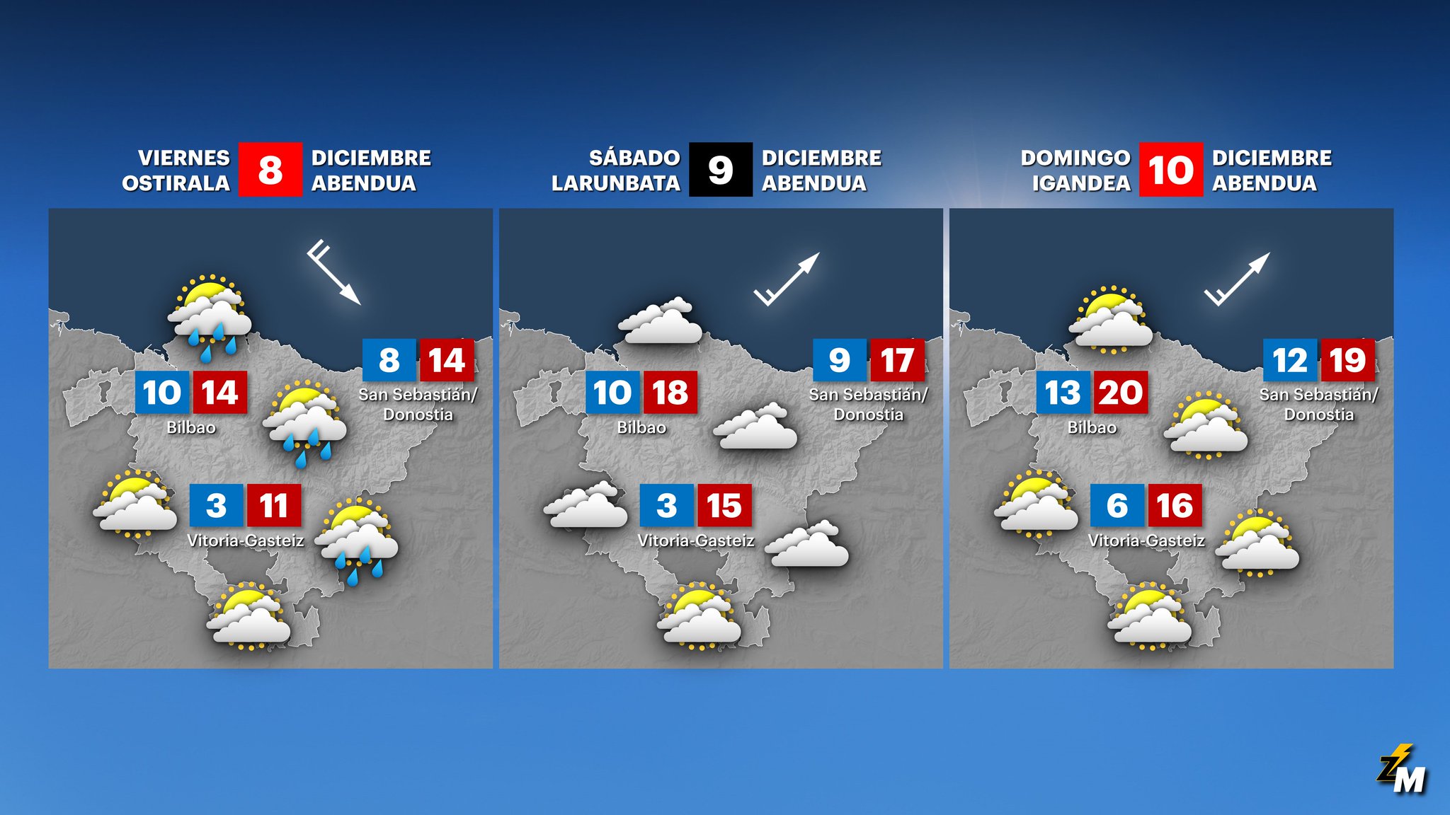 EGURALDIA | Las próximas jornadas seguirán siendo grises en Durangaldea. Lluvias, sin descartar algunos claros y temperaturas más frescas hoy pero que subirán el sábado y domingo hasta los 20 grados, serán las condiciones metereológicas de los próximos días
