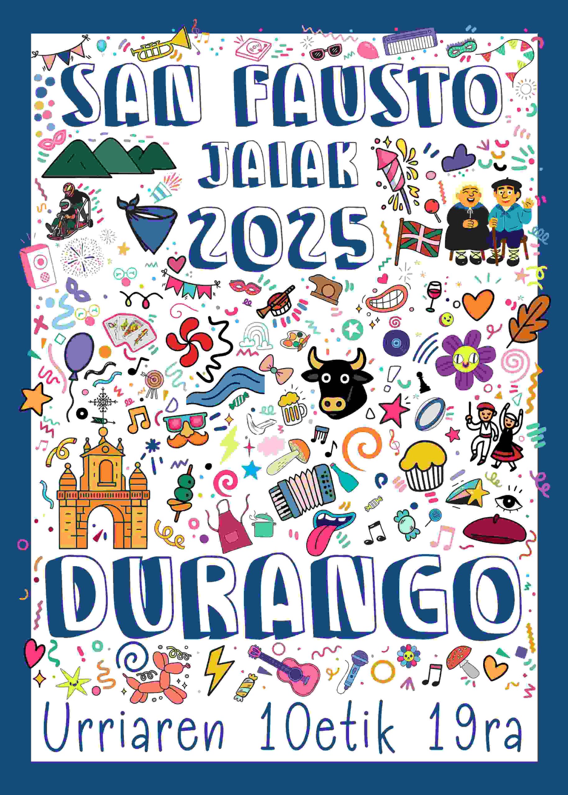 DURANGO | Se abre el plazo de votación popular para seleccionar el cartel que representará las próximas fiestas de San Fausto 2025. Hasta el 11 de septiembre, todas las personas mayores de 16 años empadronadas en Durango podrán votar por su cartel favorito entre los 7 trabajos finalistas seleccionados previamente por la Comisión de Fiestas.
